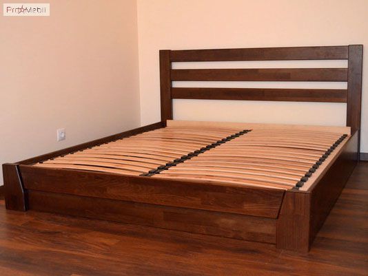 Кровать может быть изготовлена из букового щита или массива. К выбору доступно 8 цветовых решений включая белый цвет. Так же есть возможность выбора расстояния между ламелями: 4 см и 2,5 см.