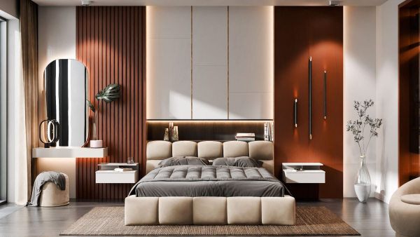 Кровать Ванесса 1 Світ Меблів сочетает в себе утонченный стиль, практичность и комфорт, превращая вашу спальню в уголок уюта и элегантности. Широкое мягкое изголовье, украшенное изысканной геометрической строчкой, придает модели оригинальный вид и добавляет комфорт во время отдыха. Двуспальная кровать с просторным спальным местом 160x200 см, идеально подойдет для уютного отдыха вдвоем. Каркас выполнен из ламинированного ДСП толщиной 16 мм, что обеспечивает долговечность конструкции, а мягкая обивка из высококачественного велюра придает кровати роскошный вид и приятные тактильные ощущения. Впечатляющая палитра цветов позволяет выбрать оттенок, который гармонично дополнит ваш интерьер. Металлическое каркас с буковыми ламелями равномерно распределяет нагрузку, поддерживает ортопедические свойства матраса и обеспечивают его хорошую вентиляцию, создавая комфортные условия для здорового сна. Кровать Ванесса 1 воплощает качество и внимание к деталям, создавая атмосферу уюта и стиля в вашем доме.