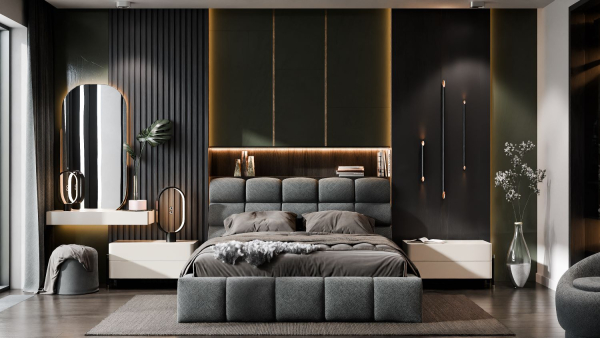 Кровать Ванесса 2 Світ Меблів приглашение в мир утончённой роскоши и безграничного комфорта. Кровать создана для тех, кто хочет превратить свою спальню в личный оазис стиля и уюта. Изысканный полуторный шедевр с размером спального места 120x200 см станет неотъемлемой частью вашей спальни, добавляя нотки гламура и современности. Каркас выполнен из прочного ламинированного ДСП толщиной 16 мм, что обеспечивает долговечность конструкции, а мягкая обивка из роскошного велюра делает кровать невероятно приятной на ощупь. Широкая палитра цветов позволяет выбрать идеальный вариант, подходящий именно к вашему интерьеру. Особое внимание привлекает мягкое изголовье с выразительной стеганой структурой крупных квадратов – это не просто элемент декора, а центр внимания, задающий стиль всей комнате. Основание под матрас выполнено из металлического каркаса с буковыми ламелями, которые обеспечивают надежную поддержку и повышенный комфорт. Кровать Ванесса 2 словно облако, готовое подарить вам полный релакс после насыщенного дня.