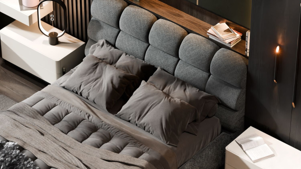 Кровать Ванесса 2 Світ Меблів приглашение в мир утончённой роскоши и безграничного комфорта. Кровать создана для тех, кто хочет превратить свою спальню в личный оазис стиля и уюта. Изысканный двуспальный шедевр с размером спального места 160x200 см станет неотъемлемой частью вашей спальни, добавляя нотки гламура и современности. Каркас выполнен из прочного ламинированного ДСП толщиной 16 мм, что обеспечивает долговечность конструкции, а мягкая обивка из роскошного велюра делает кровать невероятно приятной на ощупь. Широкая палитра цветов позволяет выбрать идеальный вариант, подходящий именно к вашему интерьеру. Особое внимание привлекает мягкое изголовье с выразительной стеганой структурой крупных квадратов – это не просто элемент декора, а центр внимания, задающий стиль всей комнате. Основание под матрас выполнено из металлического каркаса с буковыми ламелями, которые обеспечивают надежную поддержку и повышенный комфорт. Кровать Ванесса 2 словно облако, готовое подарить вам полный релакс после насыщенного дня.