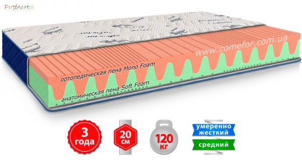 Матрас Active Skate New 140x190 украинской фабрики Come-for - ортопедический, двусторонний матрас серии Active. Комбинация двух видов ортопедической пены дает различные ощущения во время отдыха. Изделие выполнено из двух видов ортопедической пены, с неоднородным рисунком контурной резки, которое позволяет адаптировать. Покрытие каждой из сторон перфорировано, что обеспечивает матрасу дополнительную жесткость. Углубленная резка двух слоев ортопедической пены придает изделию вспомогательный массажный эффект. Mono Foam – это эластичная пена средней жесткости и повышенной упругости. Благодаря своим свойствам обеспечивает поддержку позвоночнику не снижая комфорт спального места. Soft Foam - это мягкий пенный материал высокой плотности. Применяется для придания спальному месту дополнительного комфорта. В сочетании с другими материалами повышает анатомичность матраса.