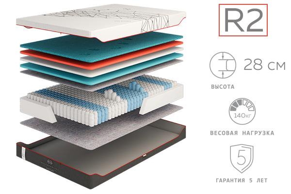 Матрас R2 80x200 украинской фабрики Come-for - относится к премиум линейке матрасов серии Regeneration. Модель оснащена технологией BioRytmic, которая позволила интегрировать в структуру ткани молекулы природных минералов, что повышает способность концентрации и контроля тела, а также повышает устойчивость к стрессам. Основа матраса – это блок высоких пружин повышенного комфорта SKY 7. Эти пружины выше и массивнее стандартных независимых пружин, благодаря чему матрас выдерживает более высокие нагрузки, а пружина имеет большую рабочую амплитуду. Основным слоем комфорта выступает материал Memory Gel. Он является гибридом Visco Memory и ТехноГель и соединил в себе их лучшие свойства. Он великолепно повторяет контуры тела, равномерно распределяет давление, обеспечивает терморегуляцию. Memory Gel эффективно поглощает тепло, дольше оставаясь прохладным. Особенностью матраса является технология Ultra Comfort. Она основана на принципе сочетания материалов с целью придать изделию "умные" свойства. Матрасы, произведенные по данной технологии используют сильные стороны нескольких настилочных слоев, предлагая Комфорт, Упругость, Поддержку и Анатомичность, которую невозможно достичь применением одного монолитного слоя материала. Технология Thermo Control отвечает за сохранение комфортной температуры во время сна. Матрас не только дольше остается прохладным в жаркое время, но и сохраняет тепло постели при резком понижении температуры. Помимо этого, матрас защищен по периметру усиленным еврокаркасом Контур 360, который на 60% шире и плотнее стандартного еврокаркаса. Серия матрасов Regeneration оснащена съемным чехлом. Это практичное решение облегчает стирку и химчистку, позволяя всегда содержать матрас в чистоте. Все ткани и настилочные слои абсолютно гипоаллергенны и имеют международные сертификаты безопасности.
