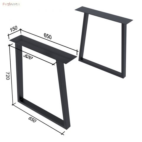 Ножки Титан смотрятся более утончённо, чем классические прямоугольные опоры. При этом прочность конструкции нисколько не уменьшается, так как сверху под столешницей опора имеет широкую пластину на всю свою ширину. Ножки смотрятся свежо и изысканно, а стол с такими опорами выглядит солидно и стильно. Ножка сделана из металлической трубы профилем 60*30 мм. Вверху опоры приварена широкая металлическая пластина толщиной 3 мм, которая увеличивает площадь соприкосновения ножки со столешницей для увеличения устойчивости конструкции. Ножка крепится к столешнице на саморезы по дереву. Опора окрашена в чёрный цвет RAL 9011 порошковой краской, устойчивой к истиранию. Столешница приобретается отдельно.