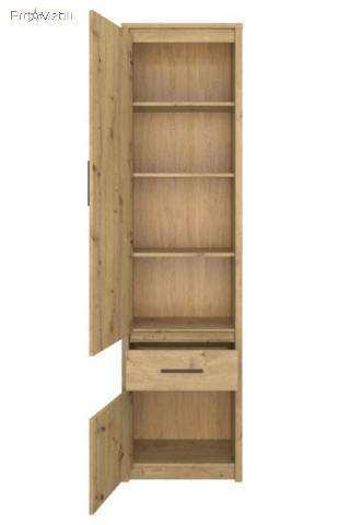Пенал REG 2D1S Айсон ВМВ элегантный в скандинавском стиле предназначена для обустройства изысканной гостиной, столовой, спальни, детской комнаты, прихожей или рабочего кабинета. Пенал имеет один выдвижной ящик и два закрытых отделения, внутри верхнего отделения установлены три полки, где прекрасно можно хранить различные предметы или ценные вещи. Пенал привлекает внимание привлекательным оттенком «дуб артизан» с четкой древесной текстурой; элегантным современным стилем; простотой геометрических форм; параллельными горизонтальными углублениями, визуально разделяющие фасады; контрастными удлиненными пластиковыми ручками черного цвета; фирменными комплектующими. Ayson VMV универсальная мебель, которая впишется практически в любой интерьер, создав чрезвычайно эстетичную и романтическую атмосферу.