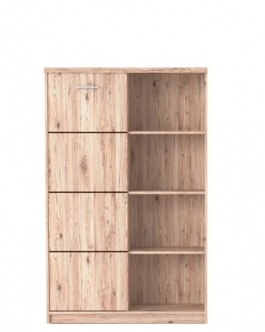 Пенал REG1DO Шанталь Gerbor воплощение элегантности и стильной, вечной классики, вдохновленный текстурой необработанного дерева и предназначенный для обустройства привлекательных интерьеров в гостиной, столовой, спальни, детской комнате, рабочем кабинете и даже в прихожей. Пенал содержит четыре открытых ниша и закрытое отделение с тремя полками внутри. Дверь открывается в левую или правую сторону в зависимости от установки петель при сборке. Коллекция привлекает внимание элегантным классическим минимализмом; простыми геометрическими формами; неповторимой глубокой текстурой натурального дерева в привлекательном оттенке «дуб сан-ремо светлый»; серебристыми продолговатыми пластиковыми ручками; прочным основанием, способствующим максимальной устойчивости; фирменными комплектующими. Мебель Шанталь Гербор - воплощение теплоты и неповторимой атмосферы в каждом доме.