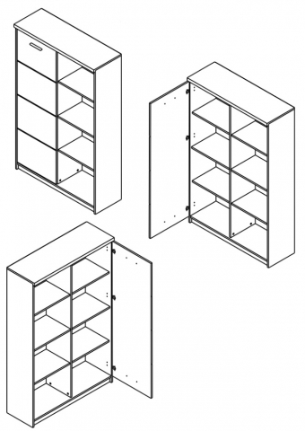 пенал содержит четыре открытых ниша и закрытое отделение с тремя полками внутри |