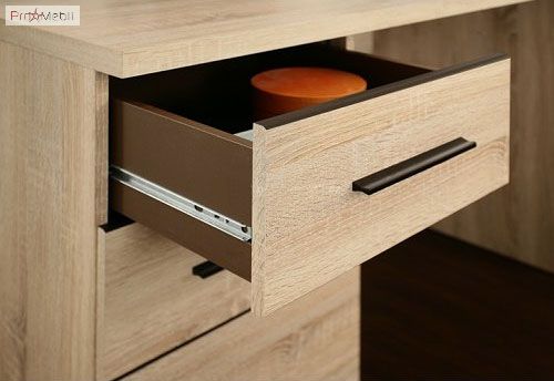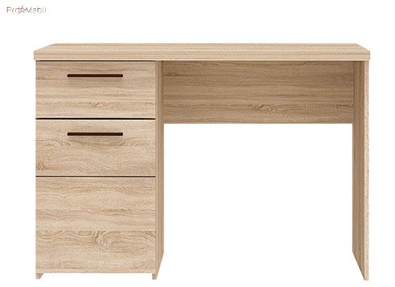 Письменный стол 1D1S из коллекции модульной мебели Соло украинской фабрики VMV. Небольшой письменный столик с выдвижным ящичком и дверкой, за которой полочка. Главной особенностью являются теплый цвет, простые геометрический формы, закругленные края и декоративные вставки в цвете венге, разделяющие фасад на отдельные блоки. Фасад дверок украшают длинные прямоугольные ручки.