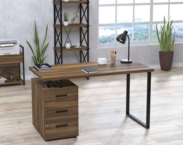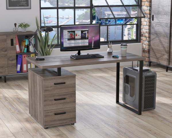 Письменный стол L-27 МАХ от компании Loft Design – это увеличенный вариант полюбившейся всем модели L-27. Стол сочетает в себе безупречный дизайн своего предшественника и новые увеличенные размеры. Металлическая конструкция произведена из прочного металлического профиля 40*20 мм. Толщина металла 1,4 мм. Конструкция невероятно прочная и, следовательно, долговечная. Каркас письменного стола L-27 MAX покрашен серебристой краской под хром. Просторная столешница и надёжный каркас в сочетании с тёплыми оттенками расцветки ДСП точным образом соответствуют стилю “лофт”. Данная модель по стилю прекрасно впишется в домашний интерьер или офисный кабинет. Широкая столешница позволяет разместить всё необходимое для учёбы/работы: ноутбук, книги, настольную лампу и т.д. Тумба с тремя глубоким ящиками может быть собрана как с правой, так и с левой стороны стола.