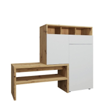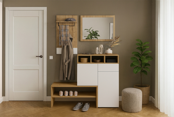 Прихожая Селин белая Сокме - современное и функциональное решение, в котором продуманный до мелочей дизайн объединяет удобство, эстетику и уют, создавая с первых минут ощущение организованного, стильного и гостеприимного пространства, где каждая деталь помогает поддерживать порядок и делает повседневное использование максимально комфортным. Корпус выполнен из качественного ламинированного ДСП толщиной 16 мм и 25 мм, фасады из ламинированного ДСП толщиной 16 мм в природном оттенке дуб артизан, дополненном чистым белым цветом. Торцевые поверхности всех элементов аккуратно облицованы кромкой ABS толщиной 0,5/1 мм и ПВХ толщиной 0,6/1 мм, благодаря чему мебель выглядит завершенной и ухоженной. Мебель привлекает внимание своим лаконичным современным дизайном, который органично вписывается в любой интерьер; четкими формами и выразительными линиями; контрастным сочетанием теплых древесных и свежих белых тонов; отсутствием традиционных ручек благодаря системе Push to Open, придающей фасадам чистоту и современность форм; прочной конструкцией с устойчивыми ножками; а также фирменной фурнитурой - телескопическими направляющими и петлями Hafele, которые делают использование удобным и комфортным. Прихожая включает: комод с просторными отделениями и открытыми нишами, дополненный удобной тумбой для хранения обуви; навесную вешалку с крючками и полкой для головных уборов; элегантное зеркало, визуально расширяющее пространство. Модули можно комбинировать по своему вкусу, создавая индивидуальное решение для вашего интерьера. Элегантная и функциональная, прихожая Селин Сокме привносит в интерьер ощущение чистоты, света и уюта, объединяя порядок, эстетику и душевное тепло в едином пространстве. Купить мебель в прихожую Селин белая Сокме можно в нашем интернет-магазине ProMebli.ua с доставкой по всей Украине. Оплата за наличный и безналичный расчет, в кредит и рассрочку.