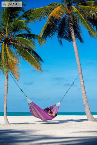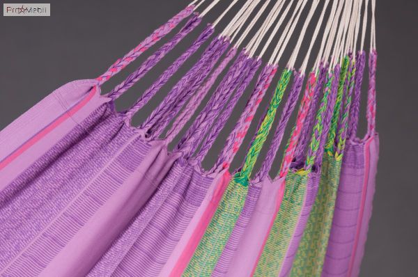 Просторный семейный подвесной гамак Flora blossom из био-хлопка, имеющего сертификат GOTS. Высококачественный подвесной гамак в уникальном исполнении создаёт ощущение непередаваемого комфорта. Он необычайно большой. Био-хлопок хорошо подходит для кожи. Отличительной особенностью этой модели являются традиционные косички на концах тканей гамаков. Большое количество шнуров для подвешивания оптимально распределяют вес вашего тела в гамаке и гарантируют удобный отдых и долговечность гамака. Особо прочные плетёные канаты обеспечивают дополнительную надёжность.