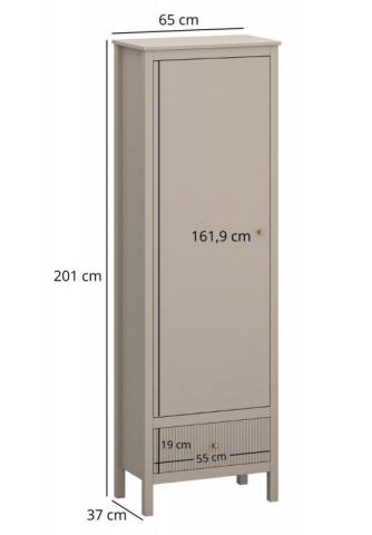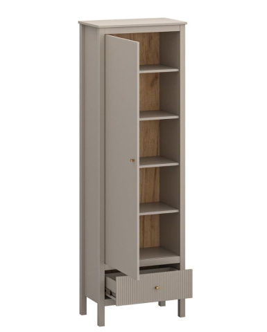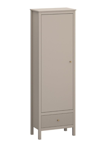 Шкаф 1D1S Kleo Mebel Bos настоящее воплощение стиля, роскоши и элегантности, превращающее любой интерьер — будь то гостиная, спальня, детская или офис — в изысканное пространство, наполненное теплом и уютом, где каждая деталь уникального дизайна становится акцентом, который привлекает внимание и создает атмосферу гармонии и красоты. Шкаф оснащен одним выдвижным ящиком, который идеально подходит для хранения мелких вещей, и закрытым отделением, внутри которого расположены четыре полочки, обеспечивающие удобное разделение пространства для вещей разного размера. Мебель поражает изысканной эстетикой, создавая атмосферу, в которой невозможно не задержаться; тонкая фрезеровка на фасадах придает мебели необыкновенную глубину и текстурность; золотистые металлические ручки становятся не просто акцентом, а настоящим элементом стиля, подчеркивая современный характер коллекции; высокие ножки придают мебели легкость и элегантность, визуально расширяя пространство и создавая ощущение воздушности в интерьере; фирменные комплектующие, обеспечивают плавность и бесшумность работы, принося удовольствие от каждого прикосновения. Kleo Mebel Bos — ваш идеальный стиль жизни.