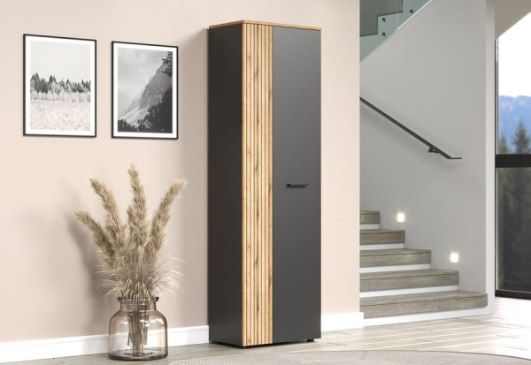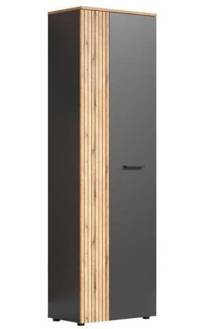 Шкаф 2D/40 Esteban Mebel Bos - это идеальное сочетание современного стиля с элементами скандинавской лаконичности и индустриальной эстетики, которая позволяет создавать индивидуальные композиции для любого помещения, будь то гостиная, столовая, спальня или прихожая, что делает шкаф универсальным и подходящим для любых пространств. Шкаф содержит одно закрытое отделение скрывает внутри себя просторное пространство для хранения. Полочки, аккуратно расположенные по всей высоте, предлагают место для сложенных вещей, аксессуаров или обуви, а выдвижная штанга для вешалок добавляет удобства, позволяя бережно разместить одежду, которую лучше хранить вертикально, от рубашек до пальто. Шкаф впечатляет утончённым сочетанием элегантности и строгости: гармония холодной геометрической точности и естественной текстуры дерева. Прямые линии подчеркивают минимализм, а реечные вставки создают игру света и тени, внося в интерьер ощущение динамики и эксклюзивности. Изящные пластиковые ручки и почти незаметные ножки добавляют шкафу легкости, а фирменная фурнитура — мягко закрывающиеся петли — обеспечивают плавное и бесшумное открывание дверей и ящиков, делая её ещё более функциональной. Мебель Эстебан Мебель Бос не просто украсит Ваш дом, она придаст особую атмосферу комфорта и элегантности в каждой его уголке.