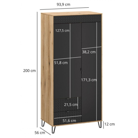 Шкаф 2D2S Bellano Mebel Bos – настоящая мебельная изысканность, сочетающая элегантность, комфорт и безупречный стиль, которая станет ярким акцентом в гостиной, спальне, столовой, рабочем кабинете, и даже в детской, создавая атмосферу роскоши и уюта. Шкаф содержит два выдвижных ящика и закрытое отделение со штангой для вешалок, создавая удобную систему хранения. Ящики идеально подходят для размещения аксессуаров и белья, а просторное отделение со штангой позволяет аккуратно развесить одежду, сохраняя её в порядке. Коллекция продумана до мелочей, уникальный дизайн завораживает и восхищает; роскошная рельефная 3D-фрезеровка на фасадах придает мебели потрясающую глубину и текстурность, создавая игру света и тени, которая делает интерьер живым и динамичным; черные металлические ручки изысканной формы добавляют элегантный штрих, который наполняет коллекцию индустриальной харизмой и благородной строгостью; высокие черные металлические ножки не только добавляют конструкции воздушности, но и обеспечивают устойчивость; фирменная фурнитура обеспечивает плавное и бесшумное открытие дверей и ящиков. Bellano – искусство в вашем доме, стиль, который вдохновляет!