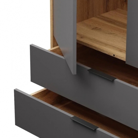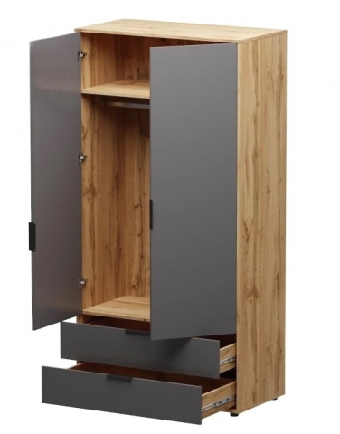 Элегантный и современный шкаф 2Д2Ш Нитро графит Сокме позволит создать оригинальное и красивое пространство в прихожей. Шкаф содержит два выдвижных ящика и одно закрытое отделение со штангой для вешалок внутри. Коллекция привлекает внимание: лаконичным сдержанным стилем; четкими линиями; сочетанием корпуса дуб вотан с графитовыми фасадами; оригинальными ручками черного цвета, интегрированными в край фасада; устойчивыми ножками; фирменными комплектующими. Мебель Нитро Сокме станет отличным решением для оформления современного пространства, обеспечив дополнительное место для компактного хранения различных вещей.