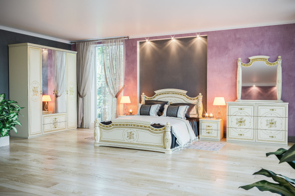 Изысканный шкаф 4Д Жасмин Світ Меблів сочетает в себе утонченный дизайн и элегантность, создавая атмосферу роскоши и уюта в вашей спальне. Шкаф содержит четыре отделения: два отделения с рядом удобных вместительных полок, отделение со штангой для вешалок и отделение с двумя выдвижными ящиками, позволяя удобно хранить одежду, белье и важные мелочи, помогая поддерживать порядок в спальне. Особенностью является гармоничное сочетание дизайна и функциональности: белоснежное исполнение с глянцевым покрытием, дополненным художественной печатью с изысканными узорами наполняет пространство светом и визуально расширяет комнату, резные элементы и объемный декор в стиле ретро придают мебели утонченность, изящные фигурные ручки подчеркивают ее благородный стиль, прочное основание гарантирует максимальную устойчивость, а фирменные комплектующие обеспечивают комфорт и удобство в использовании. Мебель в спальню Жасмин Світ Меблів — воплощение стиля, комфорта и изысканности, которое превращает ваше пространство в роскошное место для отдыха.