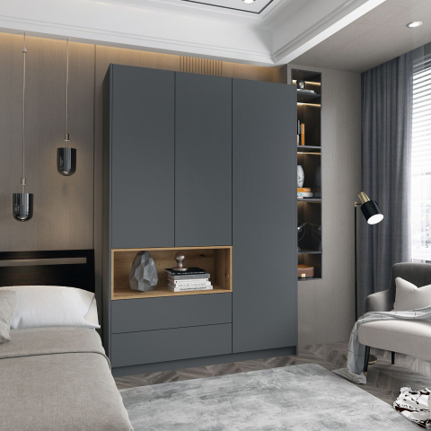 Описание Шкаф Дэйл графит / дуб эвок 3 ДСП Doros