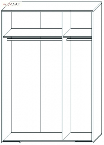 шкаф содержит две одинаковые платяные секции со штангой для вешалок и полкой |