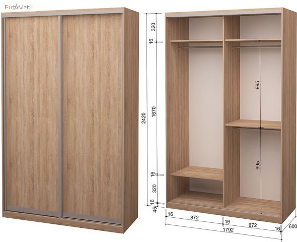 Шкаф-купе Roko - это надежная модель среди шкафов, которая гармонично впишется в Ваш интерьер и создают уют благодаря большой гамме цветов, разных размеров и прочных материалов. Шкаф-купе состоит из двух раздвижных дверей из ДСП. Внутри справа есть две штанги для вешалок и полка над штангой и внизу еще одна полка, с левой стороны одна штанга для вешалок и две полки благодаря чему Вы можете разместить все необходимые вещи. Шкаф-купе Roko представлен в широком диапазоне оттенков: дуб венге, дуб сонома, дуб молочный, что позволят мебели легко вписаться в различные дизайны, наполнив квартиру шармом и вдохновением.