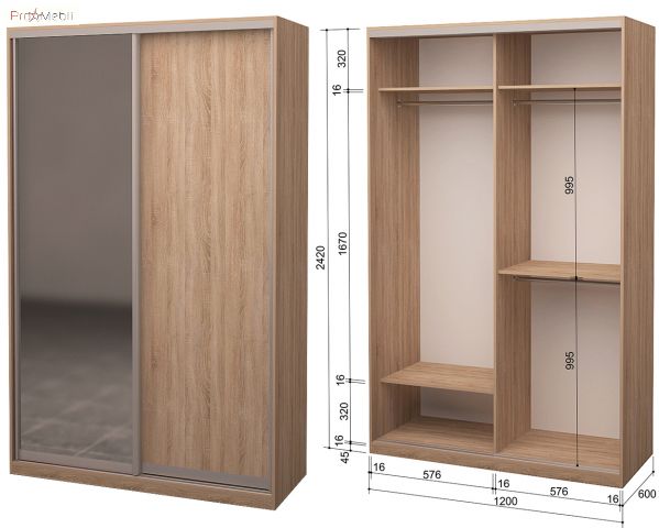 Шкаф-купе Roko - это надежная модель среди шкафов, которая гармонично впишется в Ваш интерьер и создают уют благодаря большой гамме цветов, разных размеров и прочных материалов. Шкаф-купе состоит из двух раздвижных дверей - одна из ДСП, другая зеркальная. Внутри справа есть две штанги для вешалок и полка над штангой и внизу еще одна полка, с левой стороны одна штанга для вешалок и две полки благодаря чему Вы можете разместить все необходимые вещи. Шкаф-купе Roko представлен в широком диапазоне оттенков: дуб венге, дуб сонома, дуб молочный, что позволят мебели легко вписаться в различные дизайны, наполнив квартиру шармом и вдохновением.