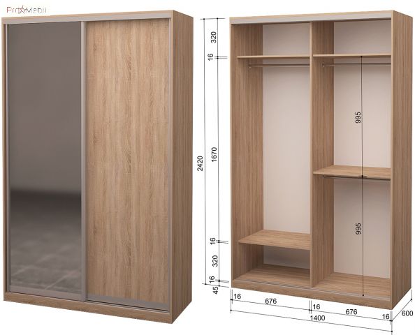 Шкаф-купе Roko - это надежная модель среди шкафов, которая гармонично впишется в Ваш интерьер и создают уют благодаря большой гамме цветов, разных размеров и прочных материалов. Шкаф-купе состоит из двух раздвижных дверей - одна из ДСП, другая зеркальная. Внутри справа есть две штанги для вешалок и полка над штангой и внизу еще одна полка, с левой стороны одна штанга для вешалок и две полки благодаря чему Вы можете разместить все необходимые вещи. Шкаф-купе Roko представлен в широком диапазоне оттенков: дуб венге, дуб сонома, дуб молочный, что позволят мебели легко вписаться в различные дизайны, наполнив квартиру шармом и вдохновением.