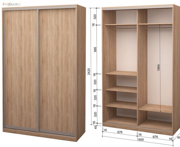 Шкаф-купе Roko - это надежная модель среди шкафов, которая гармонично впишется в Ваш интерьер и создают уют благодаря большой гамме цветов, разных размеров и прочных материалов. Шкаф-купе состоит из двух раздвижных дверей из ДСП. Внутри справа есть штанга для вешалок и полка над штангой и внизу еще одна полка, а слева находится 3 полки внизу и одна вверху полка под которой находится штанга для одежды, благодаря чему Вы можете разместить все необходимые вещи. Шкаф-купе Roko представлен в широком диапазоне оттенков: дуб венге, дуб сонома, дуб молочный, что позволят мебели легко вписаться в различные дизайны, наполнив квартиру шармом и вдохновением.