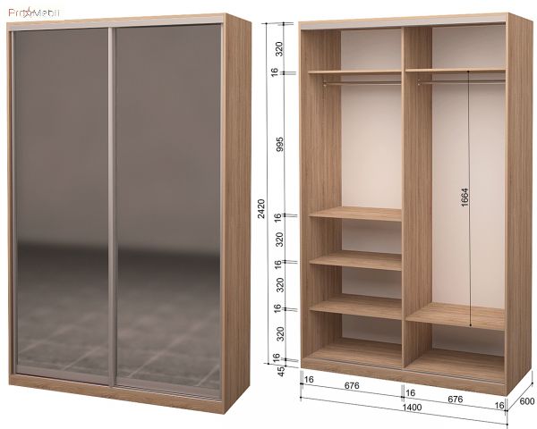 Шкаф-купе Roko - это надежная модель среди шкафов, которая гармонично впишется в Ваш интерьер и создают уют благодаря большой гамме цветов, разных размеров и прочных материалов. Шкаф-купе состоит из двух раздвижных зеркальных дверей. Внутри справа есть штанга для вешалок и полка над штангой и внизу еще одна полка, а слева находится 3 полки внизу и одна вверху полка под которой находится штанга для одежды, благодаря чему Вы можете разместить все необходимые вещи. Шкаф-купе Roko представлен в широком диапазоне оттенков: дуб венге, дуб сонома, дуб молочный, что позволят мебели легко вписаться в различные дизайны, наполнив квартиру шармом и вдохновением.