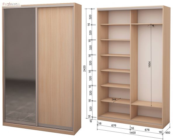 Описание Шкаф-купе Roko 2.62.242.45-1 ДСП зеркало 140