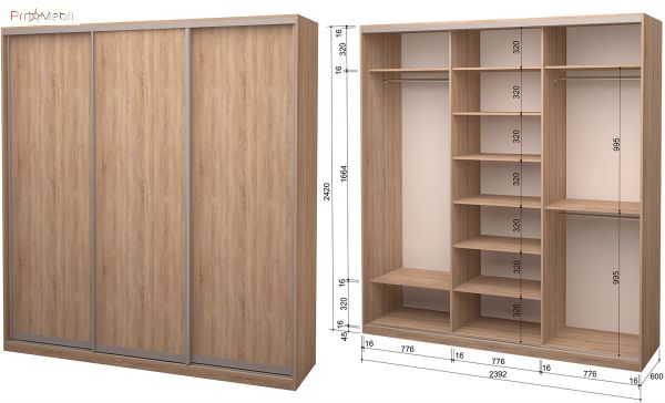 Шкаф-купе Roko - это надежная модель среди шкафов, которая гармонично впишется в Ваш интерьер и создают уют благодаря большой гамме цветов, разных размеров и прочных материалов. Шкаф-купе состоит из трёх раздвижных дверей из ДСП. Внутри справа две штанги для вешалок и две полки, слева - одна штанга и две полки, по центру шесть полок благодаря чему Вы можете разместить все необходимые вещи. Шкаф-купе Roko представлен в широком диапазоне оттенков: дуб венге, дуб сонома, дуб молочный, нимфея альба, серый графит, что позволят мебели легко вписаться в различные дизайны, наполнив квартиру шармом и вдохновением.