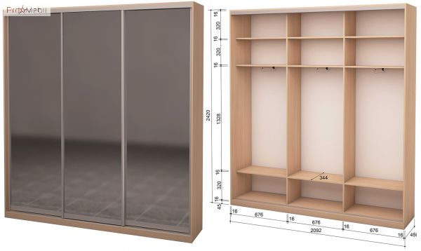 Описание Шкаф-купе Roko 3.333.242.45-2 3 зеркала 209.2