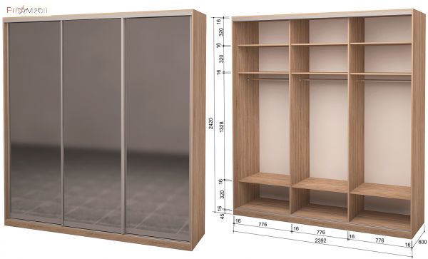 Шкаф-купе Roko - выбор качества от украинской фабрики среди шкафов, которая гармонично впишется в Ваш интерьер и создают уют благодаря большой гамме цветов, разных размеров и прочных материалов. Шкаф-купе состоит из трёх раздвижных зеркальных дверей. Внутренние наполнение шкафа состоит из равных трёх отделений, в котором по одной штанги для вешалок одежи и по три полки благодаря чему Вы можете разместить все необходимые вещи. Шкаф-купе Roko представлен в широком диапазоне оттенков: дуб венге, дуб сонома, дуб молочный, нимфея альба, серый графит, что позволят мебели легко вписаться в различные дизайны, наполнив квартиру шармом и вдохновением.