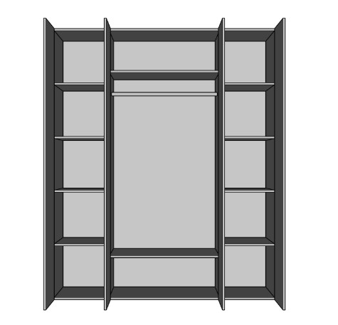 шкаф содержит три отделения: два отделения с рядом удобных вместительных полок, отделение со штангой для вешалок и полкой антресолью |