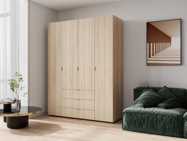 Описание Шкаф платяной Гелар дуб сонома 4 ДСП Doros