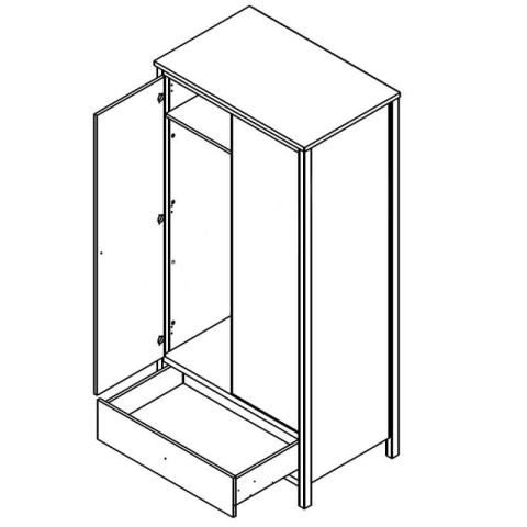 шкаф содержит один выдвижной ящик и одно закрытое отделение, внутри установлены полка и штанга для вешалок |