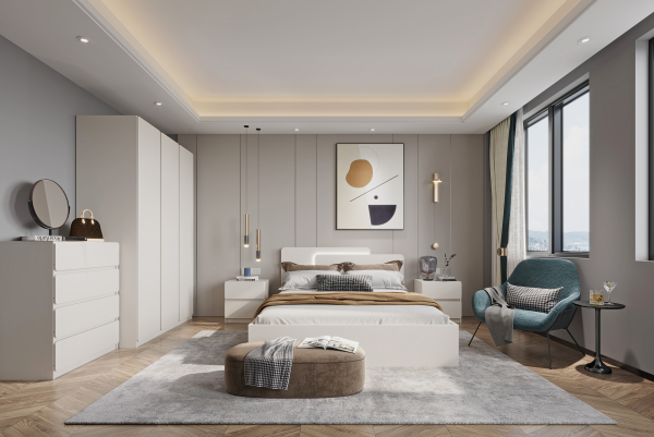 Шкаф SZF3D2S Лука Gerbor словно привносит в интерьер ощущение порядка и спокойствия, формируя пространство, где хранение выглядит естественно и гармонично. Внутренняя организация продумана для повседневного комфорта: одинарная секция с полками дополняется двойной секцией с выдвижными ящиками, штангой для вешалок и дополнительной полкой. Такое наполнение позволяет удобно распределить одежду и текстиль, сохраняя ощущение аккуратности и визуальной легкости. Плавные линии и аккуратные скругления поддерживают гармоничную эстетику коллекции, где каждая деталь работает на ощущение комфорта и визуального баланса. Оттенок кашемир мягко взаимодействует со светом, делая поверхность визуально теплой и спокойной. Отсутствие привычных ручек подчеркивает минималистичный характер дизайна: фрезерованные выемки сохраняют чистоту фасадов и усиливают ощущение цельности формы. Шкаф SZF3D2S деликатно дополняет интерьер, усиливая атмосферу комфорта, благодаря чему мебель Лука Gerbor формирует личное пространство для отдыха и вдохновения - место, куда приятно возвращаться каждый вечер.