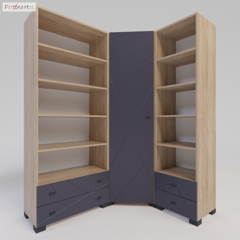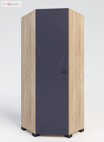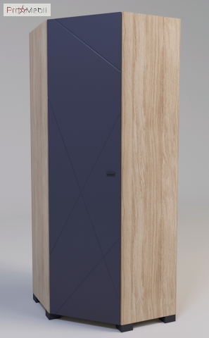 Шкаф угловой равносторонний Х-22 X-Скаут Санти однодверный, имеет удобное внутреннее наполнение, состоящее с одной стороны - из одной штанги для одежды и полки, выполняющей функции антресоли. В другой стороны - вместительные полки. Шкаф сделает ваш дом более гармоничным, уютным и стильным, существенно упростит Вашу жизнь. Шкаф очень компактный, но может похвастаться большой вместительностью. Корпус изготавливается из высококачественного ламинированной ДСП толщиной 18 мм немецкого концерна «Kronospan», фасады - МДФ c фрезеровкой толщиной 16 мм производства Италия. Торцы деталей оклеиваются ПВХ-кромкой фирмы Rehau. Мебель X-Скаут Santi выпускается в контрастном сочетании «графитовых матовых» фасадов и корпуса «дуб каменный» с природной структурой дерева. Характерными особенностями мебели X-Skaut Santi являются современный дизайн, простые геометрические формы модулей, элегантная фрезеровка на фасадах, стильные продолговатые пластиковые ручки, фирменные комплектующие немецкого производителя Hettich. Мебель X-Скаут Санти это способ уникальной аранжировки интерьера детской комнаты, в которой Вы создадите уникальный, наполненный легкостью лофт-интерьер.