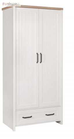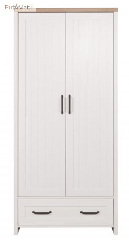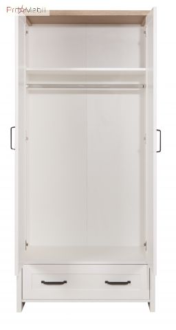 Шкаф SZF 2D1S Верне ВМВ с выдвижным ящиком, с полкой и штангой для вешалок, закрывается двустворчатой дверью. Шкаф Верне представлен в оригинальном сочетании двух цветов: белый/дуб каменный. Вместительный платяной шкаф входит в состав модульной системы Верне, которая характеризуется оригинальными фрезерованными фасадами и продолговатыми черными ручками. Используются петли Hettich и направляющие полного выдвижения. Шкаф для одежды Верне станет привлекательным и функциональным мебельным элементом в интерьере современной гостиной или столовой.