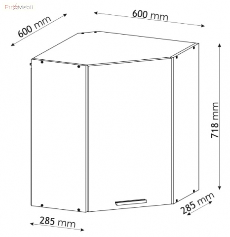 шкафчик верхний угловой содержит одно закрытое отделение с полкой внутри |
