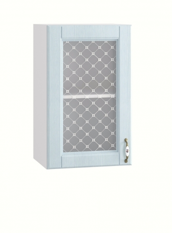 Компактный навесной шкаф В40Ск кухня Прованс Світ Меблів - элемент верхнего яруса модульной кухни, который выгодно организует даже небольшое пространство и прекрасно подойдет для хранения предметов, доступ к которым должен быть максимально быстрым и удобным. Шкафчик верхний напоминает витрину и содержит одно закрытое отделение с полкой внутри, где удобно можно разместить различные декоративные элементы, сервизы или просто посуду. Корпус изготавливается из качественного ламинированного ДСП в популярных цветовых решениях «белый», «дуб сонома» и «графит» с текстурным фасадом из МДФ с фрезерованным рисунком в нежном оттенке «голубая лагуна». Кухня Прованс голубая лагуна Світ Меблів довольно интересное и оригинальное решение для смелых и уверенных в себе людей, которая никогда не будет казаться скучной и обыденной, ведь голубой цвет привлекает внимание и запоминается.