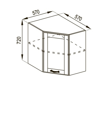 шкафчик верхний угловой содержит одно закрытое отделение с полкой внутри |