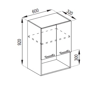 Технические характеристики Шкафчик верхний В60 2Д под микроволновку (h-920) кухня Марта глянец Світ Меблів