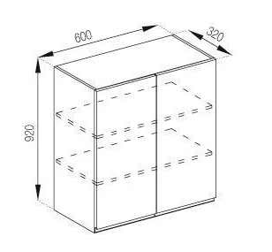 шкафчик верхний двухдверный, содержит одно закрытое отделение с двумя полочками внутри |