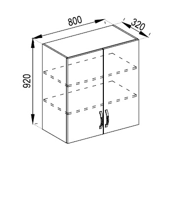 шкафчик верхний двухдверный содержит одно закрытое отделение с двумя полками внутри |
