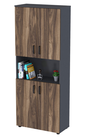 Стеллаж NT5-80-4MD — стильный акцент, который наполняет пространство уютом и гармонией, помогая поддерживать безупречный порядок как в офисе, так и дома. Благодаря продуманной конструкции с тремя функциональными зонами он легко адаптируется под ваши потребности: закрытые верхняя и нижняя секции надежно укроют личные вещи и документы от любопытных глаз, а открытая центральная полка эффектно продемонстрирует книги, папки или изящные аксессуары. Элегантные металлические ручки с черным порошковым покрытием подчеркивают современный характер модели и устойчивы к коррозии, а регулируемые ножки гарантируют идеальную устойчивость даже на неровном полу, оберегая покрытие от царапин. Изготовленный из качественного ЛДСП, стеллаж NT5-80-4MD воплощает надежность и эстетическую привлекательность, позволяя создавать аккуратное, вдохновляющее пространство. Стеллаж NT5-80-4MD выбор для тех, кто ценит удобство, стиль и функциональность в каждом элементе интерьера.