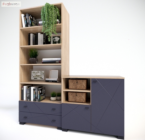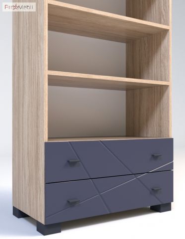 Вместительный открытый стеллаж Х-03 X-Скаут Санти для детской, гостиной или домашнего кабинета. Вверху имеет отделение с полками, внизу два выдвижных ящика. Удобный ряд полок обеспечивает простой и беспрепятственный доступ к содержимому стеллажа. На полках с легкостью разместится большое количество книг, папок и журналов. Корпус изготавливается из высококачественного ламинированной ДСП толщиной 18 мм немецкого концерна «Kronospan», фасады - МДФ c фрезеровкой толщиной 16 мм производства Италия. Торцы деталей оклеиваются ПВХ-кромкой фирмы Rehau. Мебель X-Скаут Santi выпускается в контрастном сочетании «графитовых матовых» фасадов и корпуса «дуб каменный» с природной структурой дерева. Характерными особенностями мебели X-Skaut Santi являются современный дизайн, простые геометрические формы модулей, элегантная фрезеровка на фасадах, стильные продолговатые пластиковые ручки, фирменные комплектующие. Мебель X-Скаут Санти это способ уникальной аранжировки интерьера детской комнаты, в которой Вы создадите уникальный, наполненный легкостью лофт-интерьер.