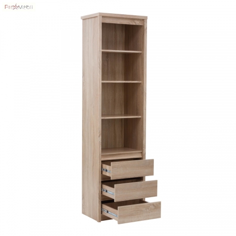 Стеллаж REG 3S Нортон ВМВ сдержанный с ненавязчивым дизайном предназначена для обустройства изысканной гостиной, столовой, спальни, детской комнаты, прихожей или рабочего кабинета. Стеллаж имеет три выдвижных ящика и четыре открытых отделения, где прекрасно можно хранить различные предметы или вещи. Корпус изготавливается из высококачественного ламинированного ДСП, фасады - из высококачественного ламинированного ДСП с элементами МДФ в теплом оттенке «дуб сонома», с выразительным природным орнаментом, создающим впечатление цельного массива дерева. Мебель Norton VMV гармонично дополнит любой современный интерьер для благоприятной обстановки и максимального удобства.
