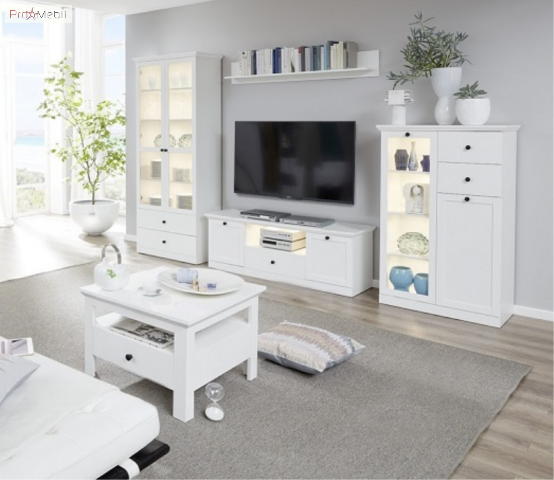 Гарнитур в гостиную Brandson Mebel Bos (Брендсон Мебель Бос) - современный и стильный набор мебели от фабрики Mebel Bos, для обустройства гостиной. Корпус изготавливается из качественного ламинированного ДСП, фасады из ламинированного МДФ с рамкой МДФ, в универсальном оттенке белого цвета, который создаст в доме уютную, теплую обстановку. Мебель Brandson Mebel Bos привлекает: стильным дизайном; простотой форм; рамочными фасадами и декоративными резными карнизами; миниатюрными металлическими точечными ручками; фирменными комплектующими: роликовые направляющие и петли без доводчика обеспечивают максимальное удобство в использовании. В ассортимент гарнитура вошли: ТВ-тумба, витрины, которые дополнительно могут комплектоваться энергосберегающей светодиодной подсветкой, а также подвесная полочка. Все модули можно комбинировать друг с другом в любой конфигурации, создавая индивидуальный интерьер в своем доме. Коллекция Брендсон Мебель Бос принесет свет, современность и элегантность в ваш дом. Купить мебель Brandson Mebel Bos можно в нашем интернет-магазине ProMebli.ua с доставкой по всей Украине. Оплата за наличный и безналичный расчет, в кредит, рассрочку или оплату частями от ПриватБанк.