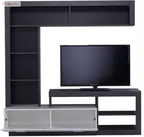 стенка продается комплектом и состоит из: открытых полок, тумбы под телевизор с откидной дверью и надставки |