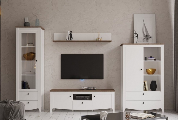 Модульная стенка Карина нимфея альба Gerbor – набор мебели в скандинавском стиле, что делает её идеальным выбором для современного обустройства гостиной. Корпус и фасадные части изготавливаются из высококачественного ламинированного ДСП Kronospan толщиной 16 мм и 22 мм в сочетании белоснежного оттенка нимфея альба, который придаст элегантность и оптически увеличит пространство помещения, с контрастными верхними топами цвета дуб сонома трюфель - придав утончённую естественность. Коллекция привлекает внимание уникальным дизайном с эстетической красотой; элегантными скругленными формами; точечными металлическими ручками SIRO в фактуре античного серебра; высокими фрезерованными ножками; фирменными комплектующими: шариковыми направляющими полного выдвижения Hafele и навесными петлями Hettich, гарантирующие удобное использование и доступ к содержимому мебели. Гостиную украсят витрины, со вставкой из прозрачного закаленного стекла, стеллаж, выразительная ТВ тумба, а также подвесная полка. Благодаря мебели Карина Gerbor желаемое помещение станет оазисом комфорта и элегантности, придавая Вашему дому неповторимый вид. Купить модульную мебель Карина Гербор можно в нашем интернет-магазине ProMebli.ua с доставкой по всей Украине. Оплата за наличный и безналичный расчет, в кредит, рассрочку или оплату частями от ПриватБанк.