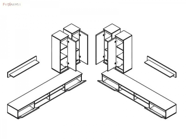 - тумба под телевизор – 1 шт. - выс./шир./гл. – 29/220/37 см, две откидные двери, две ниши;
