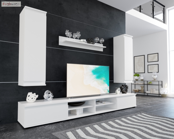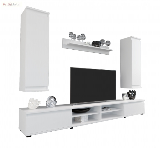 Стенка Люсия 220 Гербор – элегантный мебельный комплект с современными тенденциями в дизайне от украинской мебельной фабрики Gerbor - холдинг, для обустройства интерьера гостиной. Корпус и фасады изготавливаются из качественного ламинированного ДСП, в белоснежном цветом решении «нимфея альба». Мебель Люсия Gerbor характеризуется стильным лаконичным дизайном; простыми геометрическими формами; современной цветовой гаммой; отсутствием ручек, их роль выполняют фрезерованные на фасаде выемки.